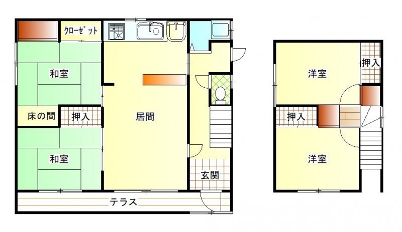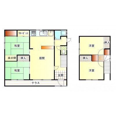 4LDK(93.15m²)└ 1階:LDK12帖 和室6帖 和室6帖 / 2階:洋室6帖 洋室6帖