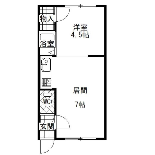 1DK(23.56m²)└ DK7帖 洋室4.5帖