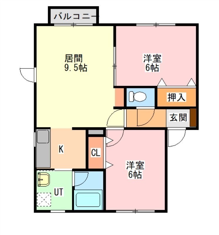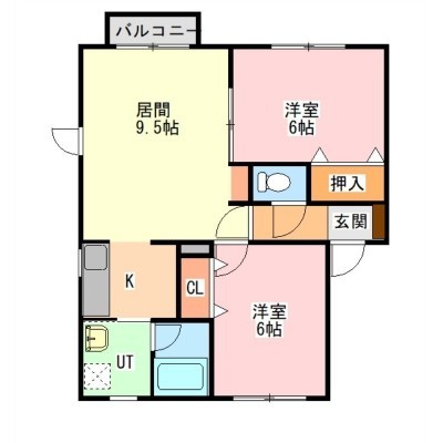 2LDK(51.84m²)└ L9.5帖 K2.8帖 洋室6帖 洋室6帖