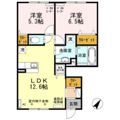 2LDK(56.54m²)└ LDK12.6帖 洋室6.5帖 洋室5.3帖