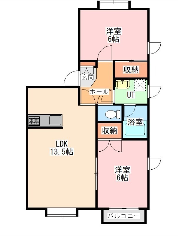 2LDK(55.9m²)└ LDK13.5帖 洋室6帖 洋室6帖
