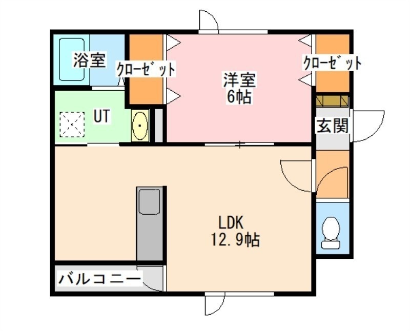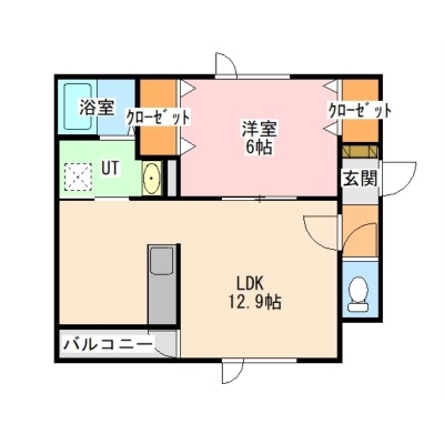 1LDK(45m²)└ LDK12.9帖 洋室6帖
