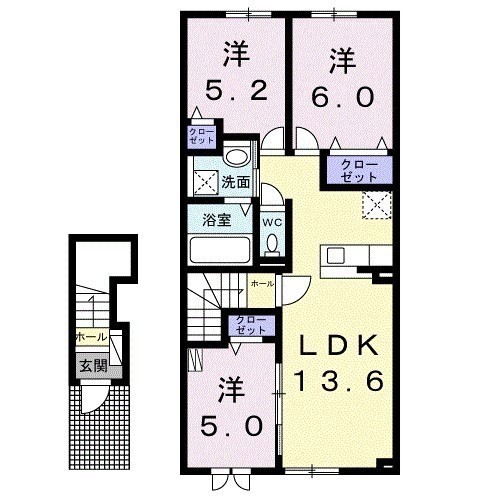 3LDK(66.6m²)└ LDK13.6帖 洋室5帖 洋室5.2帖 洋室6帖