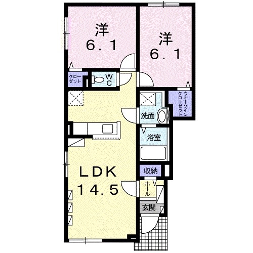 2LDK(55.73m²)└ LDK14.5帖 洋室6.1帖 LK6.1帖