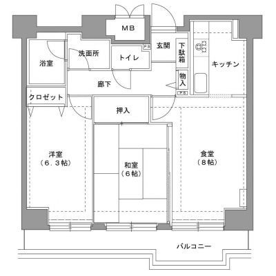 2DK(55.8m²)└ D8帖 K3.5帖 和室6帖 洋室6.3帖