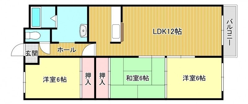 3LDK(73.3m²)└ LDK12帖 洋室6帖 洋室6帖 和室6帖