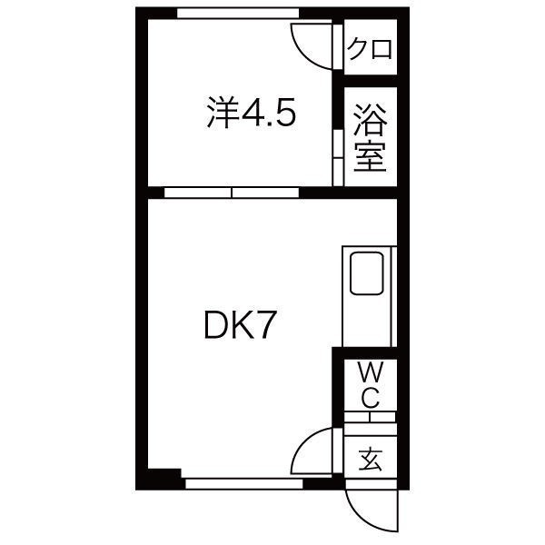 1DK(24m²)└ DK7帖 洋室4.5帖