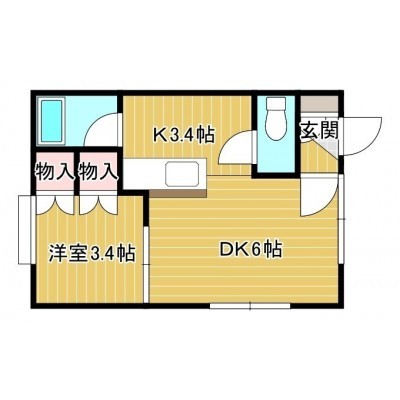 1DK(27.88m²)└ D6帖 K3.4帖 洋室3.4帖