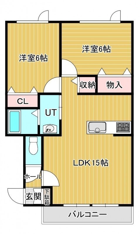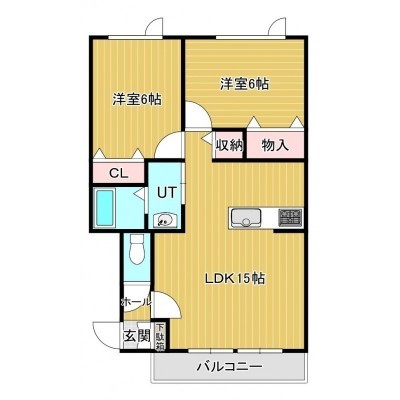 2LDK(57.57m²)└ LDK15帖 洋室6帖 洋室6帖