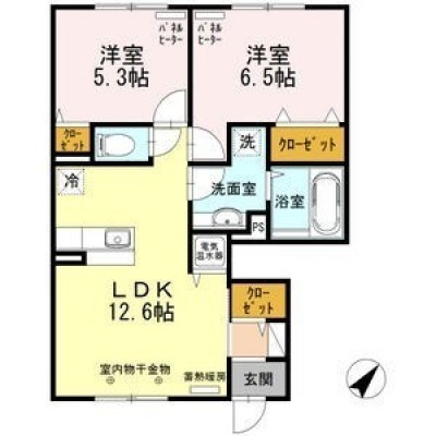 2LDK(56.54m²)└ LDK12.5帖 洋室6.5帖 洋室5.3帖