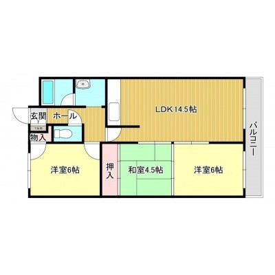 3LDK(65.28m²)└ LDK14.5帖 洋室6帖 和室4.5帖 洋室6帖