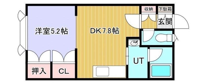 1DK(32.8m²)└ DK7.8帖 洋室5.2帖