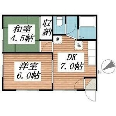 2DK(36.45m²)└ DK7帖 洋室6帖 和室4.5帖