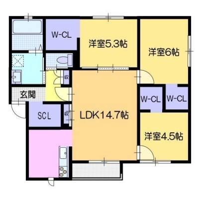 3LDK(73.26m²)└ LDK14.7帖 洋室6帖 洋室5.3帖 洋室4.5帖