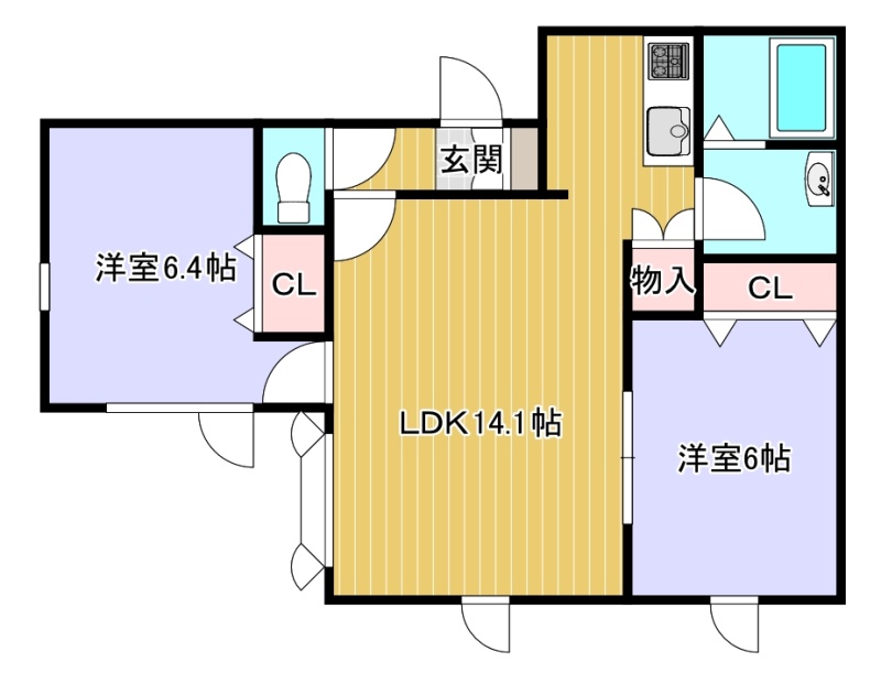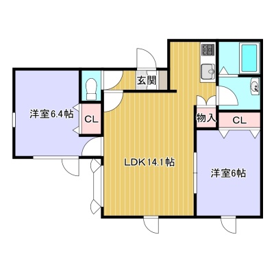 2LDK(54.8m²)└ LDK14.1帖 洋室6帖 洋室6.4帖