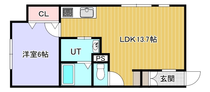 1LDK(44.71m²)└ LDK13.7帖 洋室6帖