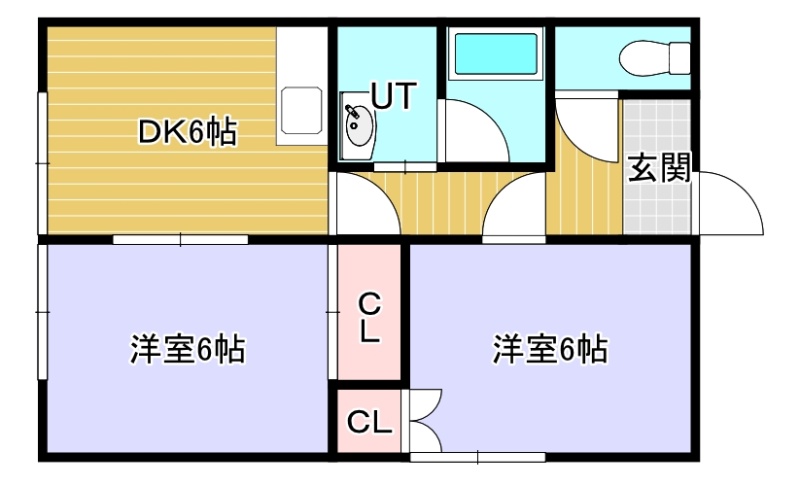 2DK(36.08m²)└ DK6帖 洋室6帖 洋室6帖