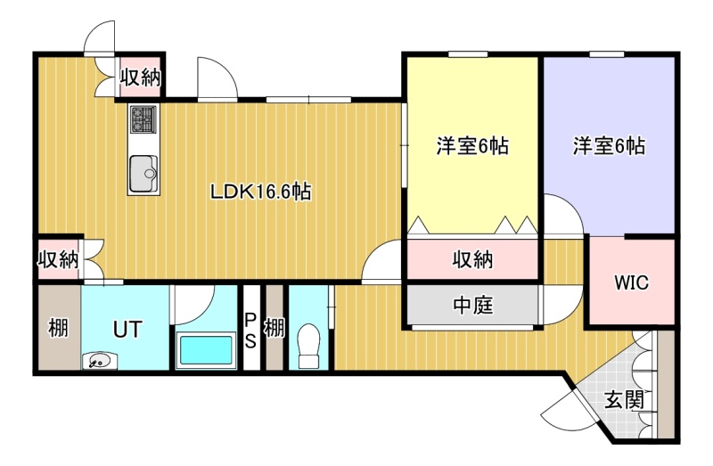 2LDK(84.25m²)└ LDK16.6帖 洋室6帖 洋室6帖
