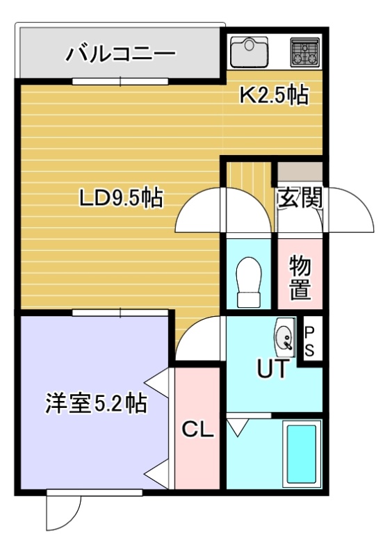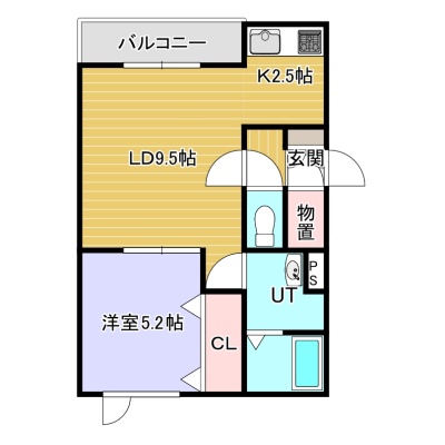 1LDK(40.89m²)└ LD9.5帖 K2.5帖 洋室5.2帖