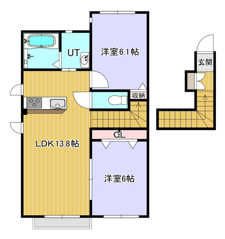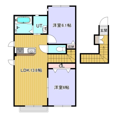 2LDK(61.3m²)└ 2階:洋室6.1帖 / その他:LDK13.8帖 洋室6帖