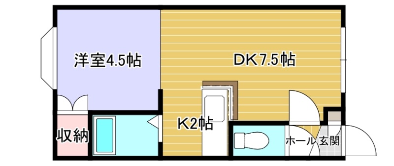 1DK(27.54m²)└ DK7.5帖 洋室4.5帖