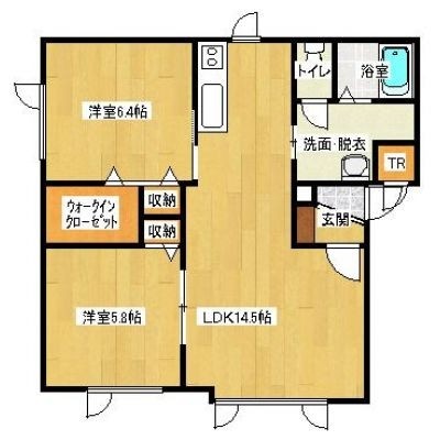 2LDK(59.25m²)└ 2階:LD10.5帖 K4帖 洋室6.4帖 洋室5.8帖