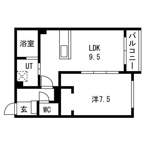 1LDK(38.5m²)└ LDK9.5帖 洋室7.5帖