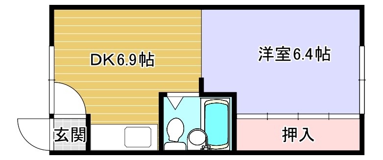 1DK(25.92m²)└ DK6.9帖 洋室6.4帖
