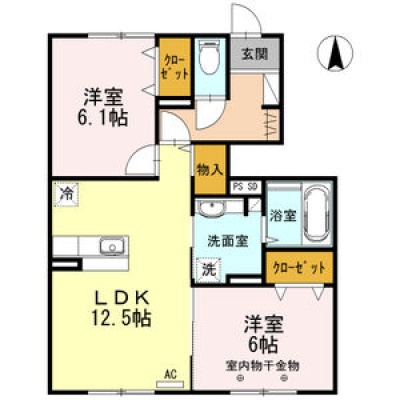 2LDK(60.7m²)└ LDK12.5帖 洋室6.1帖 洋室6帖