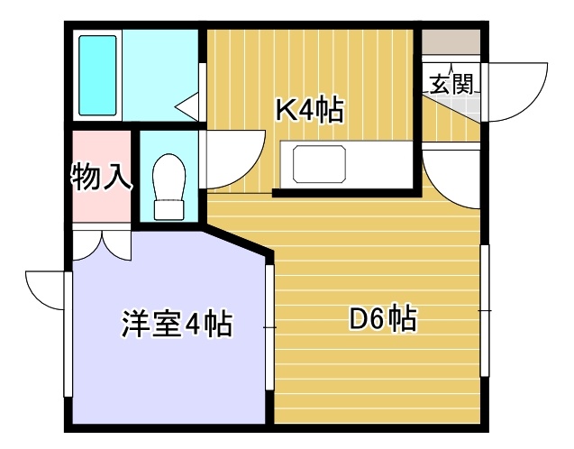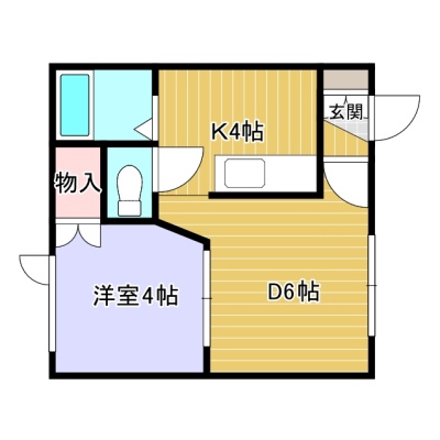 1DK(28m²)└ D6帖 K4帖 洋室4帖