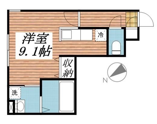 ワンルーム(26.3m²)└ 洋室9.1帖