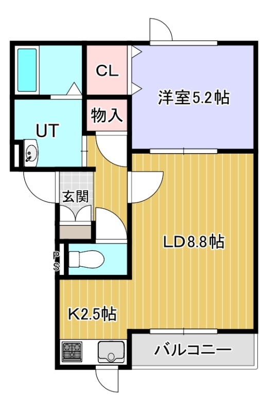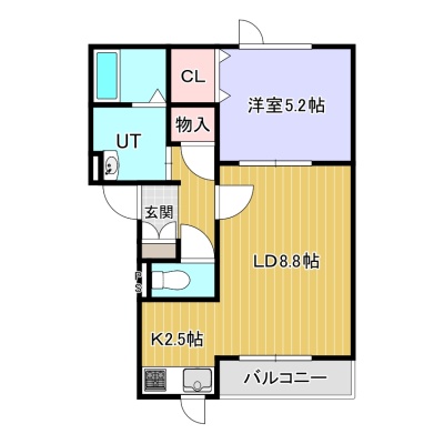 1LDK(41.71m²)└ LD8.8帖 K2.5帖 洋室5.2帖