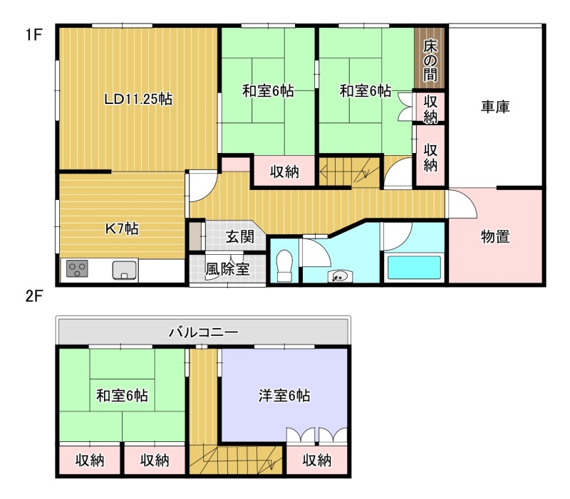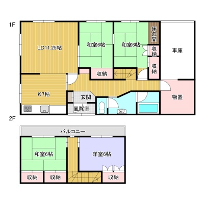 4LDK(104.89m²)└ LD11.25帖 K7帖 和室6帖 和室6帖 和室6帖 洋室6帖
