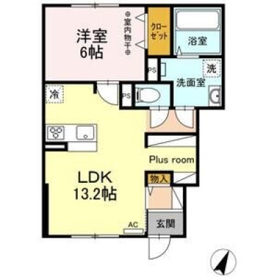 1LDK(47.54m²)└ LDK13.2帖 洋室6帖