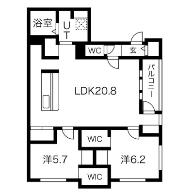 2LDK(70.56m²)└ LDK20.8帖 洋室6.2帖 洋室5.7帖