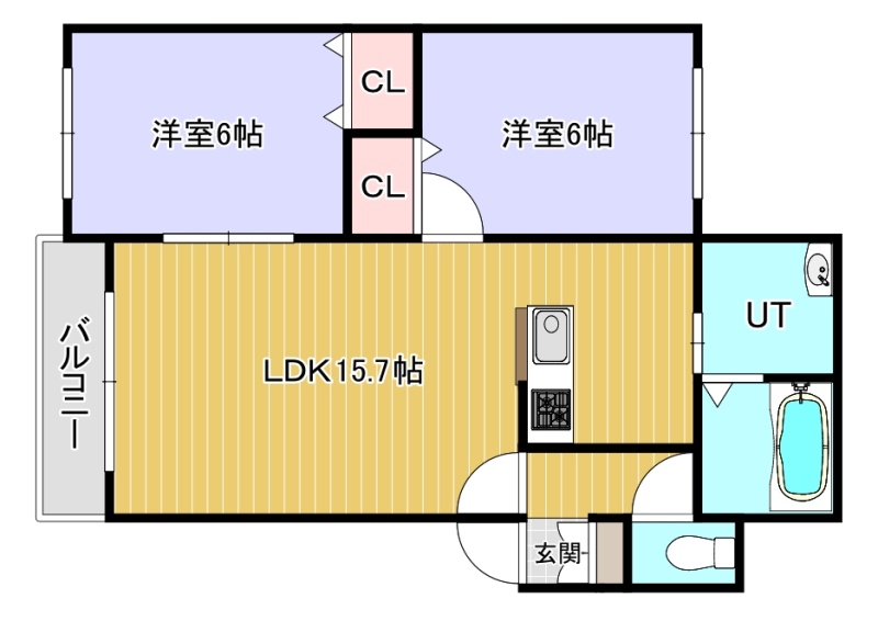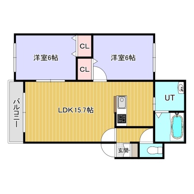 2LDK(60.77m²)└ LDK15.7帖 洋室6帖 洋室6帖