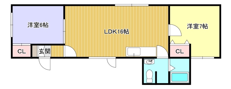 2LDK(56.34m²)└ LDK16帖 洋室6帖 洋室7帖