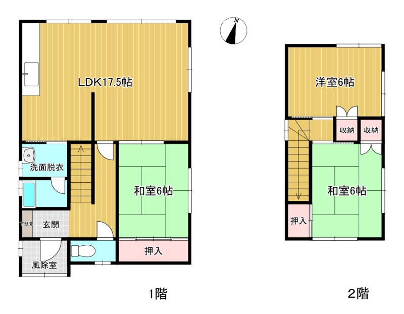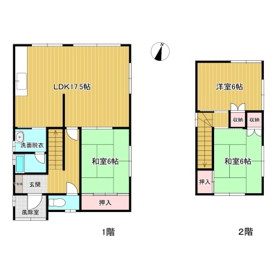 3LDK(81m²)└ 1階:LDK14帖 和室6帖 / 2階:洋室6帖 和室6帖