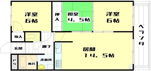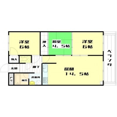 3LDK(65.28m²)└ LDK14.5帖 和室4.5帖 洋室6帖 洋室6帖