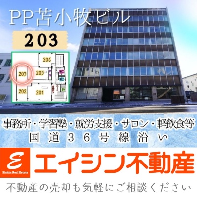 【PP苫小牧ビル】203号室✨1年間賃料半額✨事務所・学習塾・就労支援・サロン・軽飲食等✨栄町
