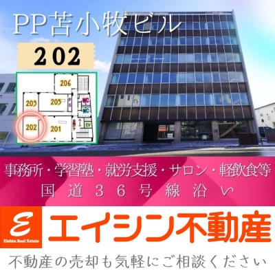 【PP苫小牧ビル】202号室✨1年間賃料半額✨事務所・学習塾・就労支援・サロン・軽飲食等✨栄町