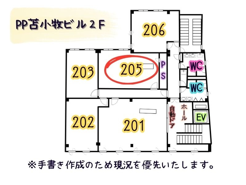 【PP苫小牧ビル】205号室✨1年間賃料半額✨事務所・学習塾・就労支援・サロン・軽飲食等✨栄町