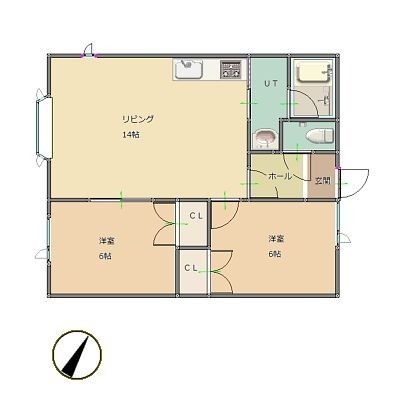 2LDK(54.67m²)└ 1階:LDK14帖 洋室6帖 洋室6帖