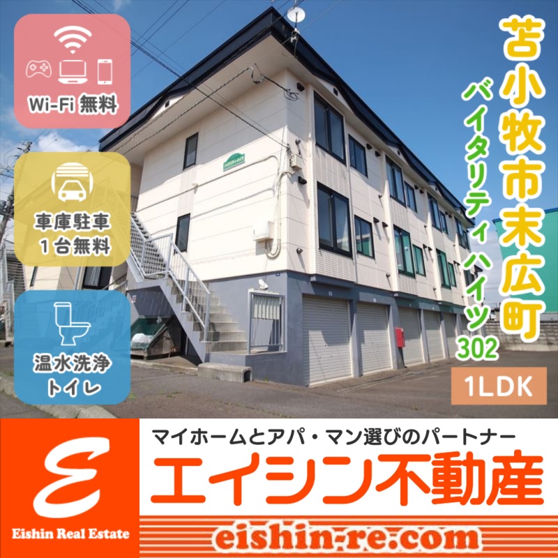 ここに注目!【2026年1月末退去予定】苫小牧中心部で新生活を始めたい方にオススメ😊敷金・礼金・仲介料・保証料無料🙌月頭入居の場合、初期費用6万円台でご入居可能です✨ 車庫駐車1台無料(高さ1.9mまで)🚙 最上階1LDKのお部屋は南向きで日当たりも良く、LDK9帖と洋室6.2帖のゆったりとした空間で快適にお過ごしいただけます😌 嬉しい無料Wi-Fi完備🛜通信料を気にせずインターネットを楽しめます👍 モニタ付きインターホン・灯油FFストーブ・シャンプードレッサー・温水洗浄トイレなどの暮らしを快適にする設備も充実🍀 セブンイレブン・ツルハドラッグ・コープさっぽろが徒歩5分圏内🍎苫小牧港市場・郵便局・マックスバリュ・市役所も徒歩約10分圏内と利便性良好です🌈 🔶初期費用は60,200円(賃料40,000円+24時間安心サポート1,210円+住宅保険料18,000円+口座振込手数料990円※月頭入居の場合) 🔶毎月のお支払い額は41,540円(賃料40,000円+24時間安心サポート1,210円+口座引落手数料330円) 🔶詳細はエイシン不動産までお気軽にお問い合わせください😊