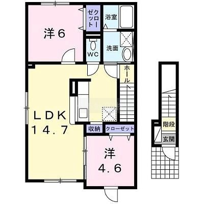 2LDK(59.26m²)└ 2階:LDK14.7帖 洋室6帖 洋室4.6帖