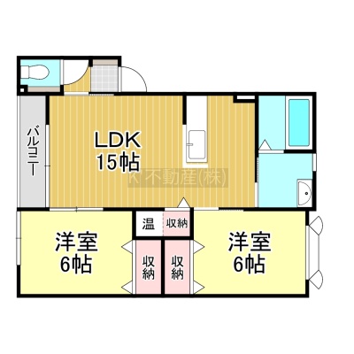2LDK(62.21m²)└ LDK15帖 洋室6帖 洋室6帖