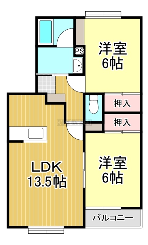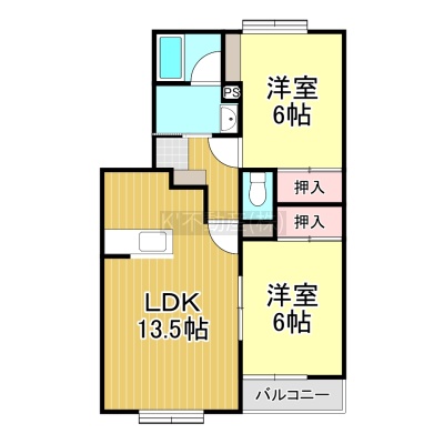 2LDK(56.57m²)└ LDK13.5帖 洋室6帖 洋室6帖