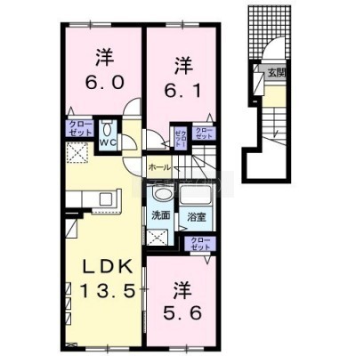 3LDK(67.6m²)└ LDK13.5帖 洋室6.1帖 洋室6帖 洋室5.6帖