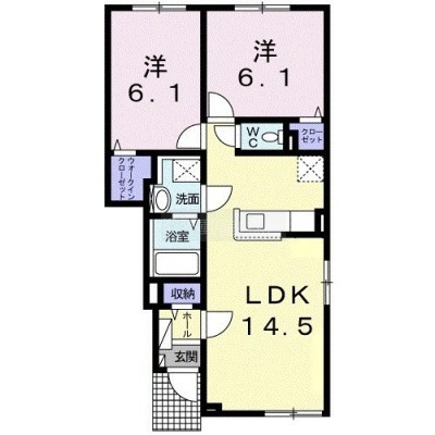 2LDK(55.73m²)└ LDK14.5帖 洋室6.1帖 洋室6.1帖
