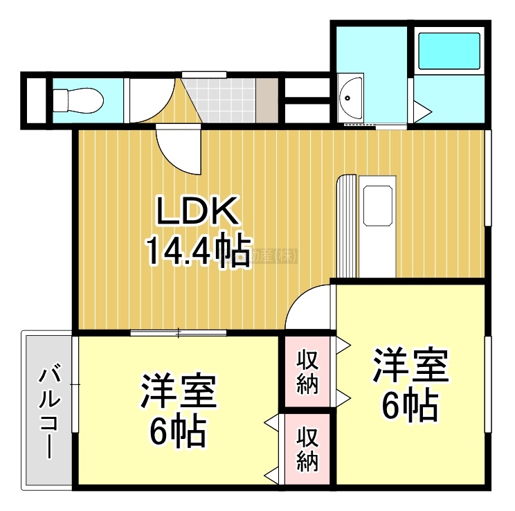 2LDK(53.86m²)└ LDK14.4帖 洋室6帖 洋室6帖